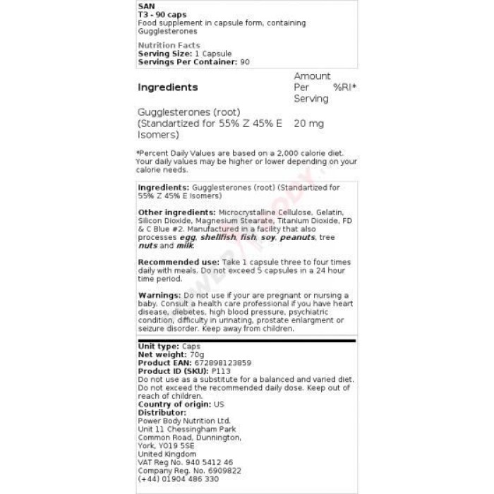 25 mg de guggulsteronas três vezes por dia